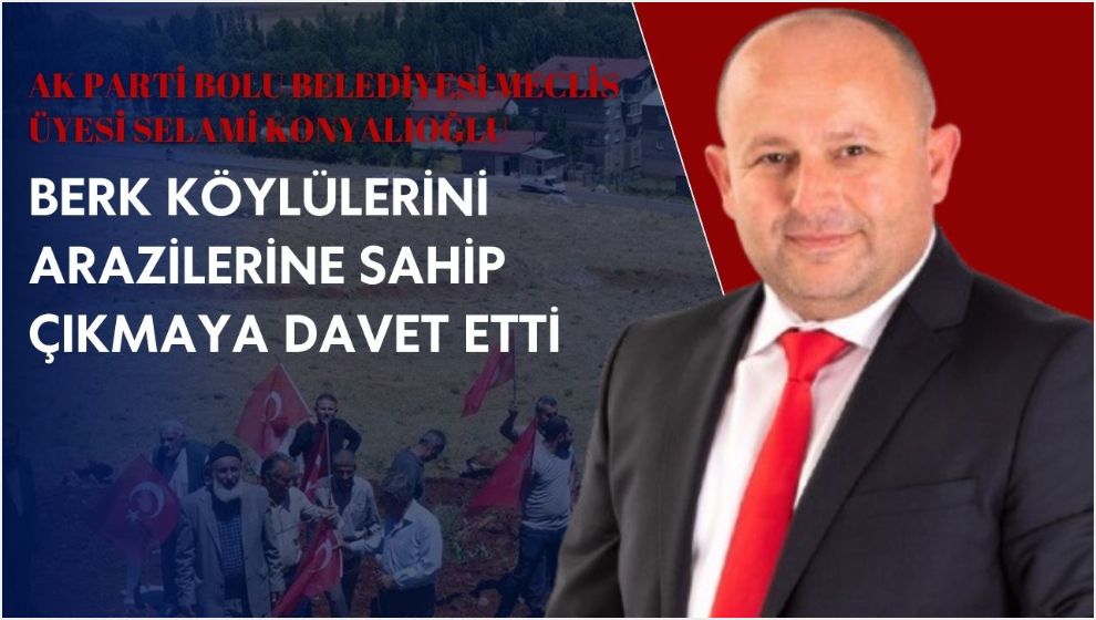 CHP'li Belediye Meclis Üyelerinin evet oylarıyla Berk Köyündeki 61 bin metrekare arazinin kiraya verilmesi kararına en yoğun ve ısrarcı bir şekilde itiraz eden AK Partili Bolu Belediyesi Meclis Üyesi Selami Konyalıoğlu, sosyal medya hesaplarından Berk Köyü sakinlerine çağrıda bulunarak, arazilerine sahip çıkmalarını istedi.